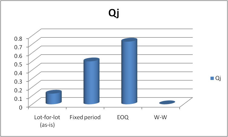 Figure 3 evaluates inventory management policies in a global supply chain using the VIKOR method, focusing on the Qj measure, which ranks policies based on their proximity to the optimal solution. The W-W policy achieves the best performance with a Qj value of 0, indicating perfect alignment with the ideal. The lot-for-lot policy follows with a relatively low Qj (0.123807), indicating good alignment. The constant-time policy has a moderate Qj value of 0.5, while the EOQ shows the weakest performance with a very high Qj (0.730048), reflecting a high deviation from the optimal solution. The W-W is the preferred policy.