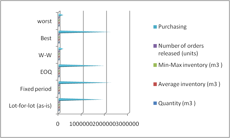 | Inventory management policy | Quantity (m3 ) | Average inventory (m3 ) | Min-Max inventory (m3 ) | Number of orders released (units) | Purchasing |